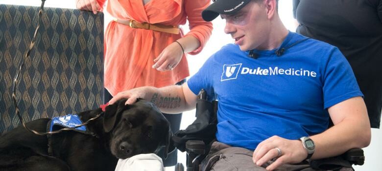 After an explosion at Ft. Bragg left Sgt. Cory Muzzy with severe injuries, the soldier returned to Duke to thank his doctors for saving his life, and the thera ...