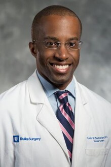 I am a vascular surgeon with Duke Health. I treat all vascular problems, but I primarily focus on problems involving arteries, such aneurysms or blockages in arteries that supply the brain, intestines, or legs. Vascular disease can be chronic and life altering. In my opinion, patients with vascular disease are extremely resilient. It was the resilience of patients with vascular disease that drew me to this specialty. I found the resilience and perseverance of vascular patients inspiring. I enjoy getting to know patients and their families and being a part of their story. I am originally for Washington D.C. I enjoy sports, grilling and spending time with my wife and two children.