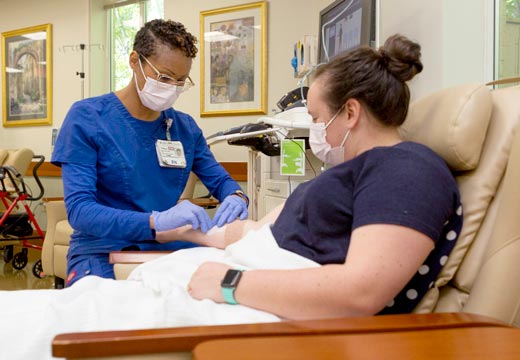 Duke’s Cary-based cancer center makes it easy for you to receive high-quality cancer treatment in an outpatient center close to your home. Our team cares for men and women with different types of cancers, including breast cancer, colon cancer, gastrointestinal cancers, melanoma, prostate cancer, and kidney cancer. Your appointments at this cancer center in Cary may include lab work, consultations with surgical oncologists, visits with medical oncologists, and treatments in our open infusion suite.